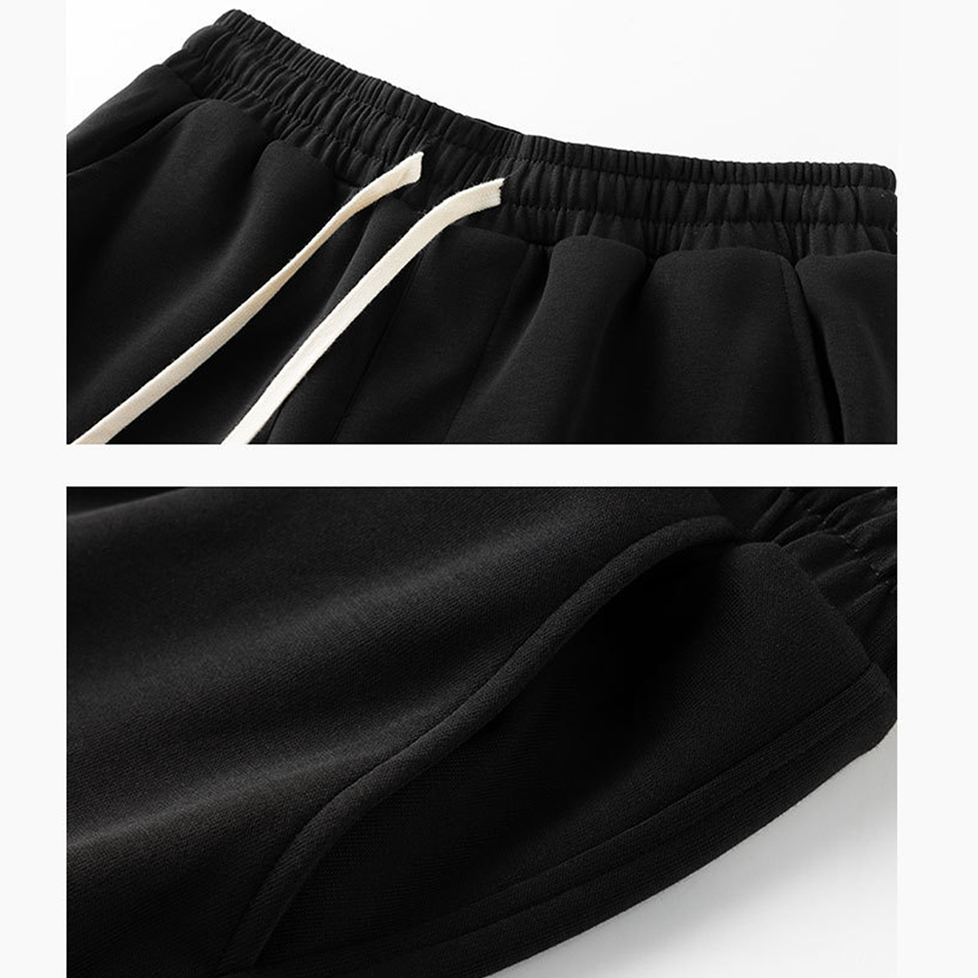 Along with, pants with adjustable elastic drawstring waistband. front pockets and back patch pocket. Elastic cuffed hems.